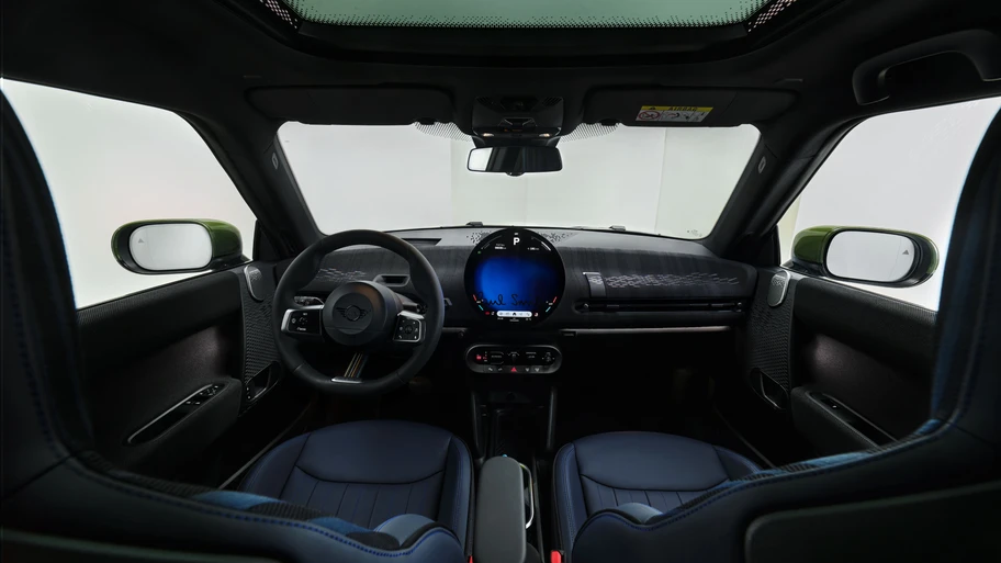 Esta edición estará disponible en versiones 3 puertas, 5 puertas y Convertible, con motorización eléctrica o de combustión. Su diseño combina el espíritu extrovertido de Mini con la elegancia minimalista de Smith. Los tonos Statement Grey, Inspired White y Midnight Black Metallic se complementan con acentos en Nottingham Green, un homenaje a la ciudad natal del diseñador. En el techo, las icónicas Signature Stripes aportan el toque gráfico que distingue al creador británico.